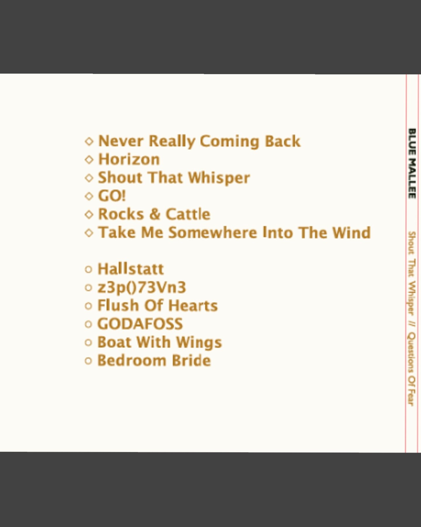 If you are looking for great storytelling and beautiful soundtracks within your music, then Shout That Whisper by Blue Mallee is for you!